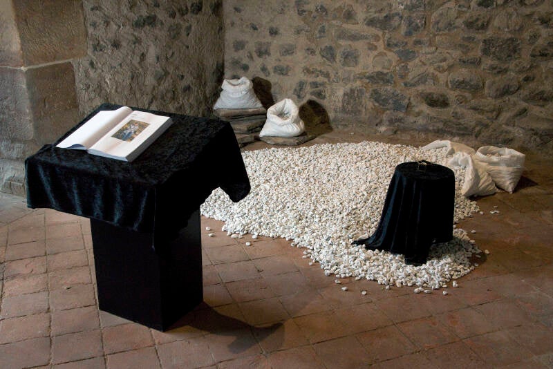 20.000 Kieselsteine wurden mit den Vornamen der Opfer beschriftet. 10.147 Steine wurden bewusst nicht beschriftet, da ich der Meinung bin, dass die Aufarbeitung und die Erinnerung an die Verbrechen niemals abgeschlossen sein sollte.