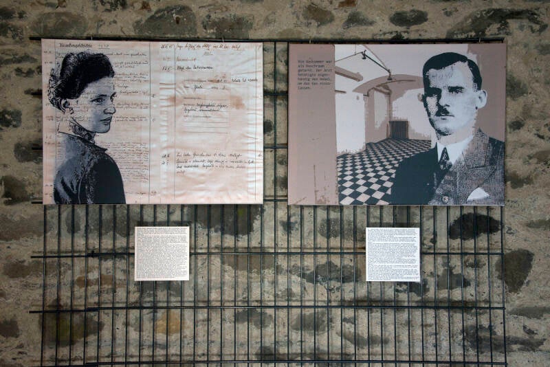 Zu beiden Bildern findet sich je eine Texttafel mit der jeweiligen Biografie.