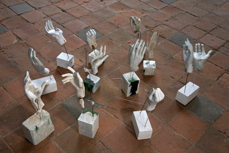 "Lebenslüge II - Hilfreich". Hände sind Werkzeuge. Man sieht ihnen nicht an, was sie anrichten können. Es können auch Hände sein, die harmlos scheinen, sauber und gepflegt sind und doch den nächsten Tag töten können.